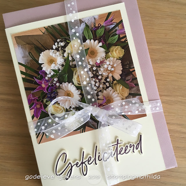 Een set eenvoudige fotokaartjes gemaakt. Vaak maak ik foto's van de bloemen die ik koop of krijg. Leuk om ze te gebruiken voor snelle, simpele kaarten. Ze kregen allemaal Nederlandse teksten. Op deze hierboven gebruikte ik nieuwe tekststempels van Els Brigé met de bijhorende stansen.