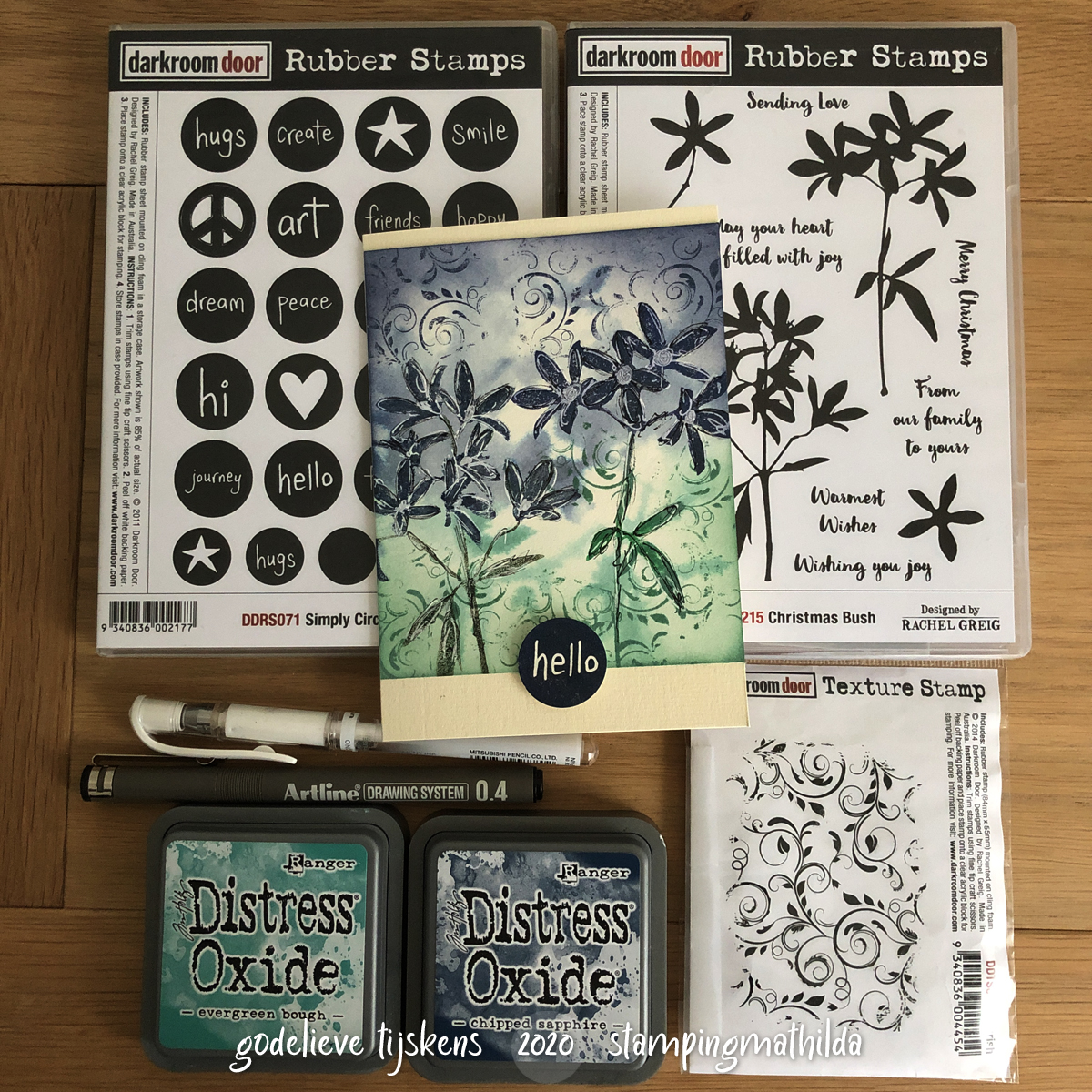 Mooie stempelset, deze Christmas Bush van Darkroom Door.  In Australië bloeien ze rond kerstmis, maar ze kunnen het ganse jaar op een kaart vind ik.  Gestempeld met Distress inkt en Distress Oxide inkt.  Met een zwart pennetje gekrabbeld, en de witte gelpen kwam er ook nog aan te pas.
