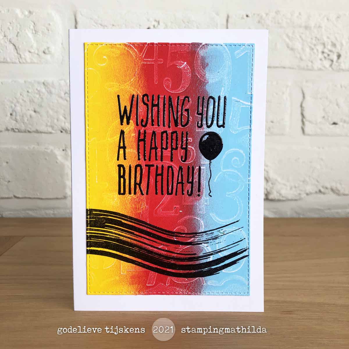 Op een gelprint uit mijn voorraad gestempeld, met zwarte Archival inkt en Darkroom Door stempels. Het stempelwerk kreeg een laagje kleurloos embossing, wat het zwart nog zwarter maakt :)